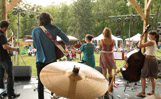 After a sound check by the Knackers, Hay Fever took the stage and were followed by the Greyhound Riders. The Knackers started on stage and then led the crowd down to the bonfire on the beach to finish off the evening.